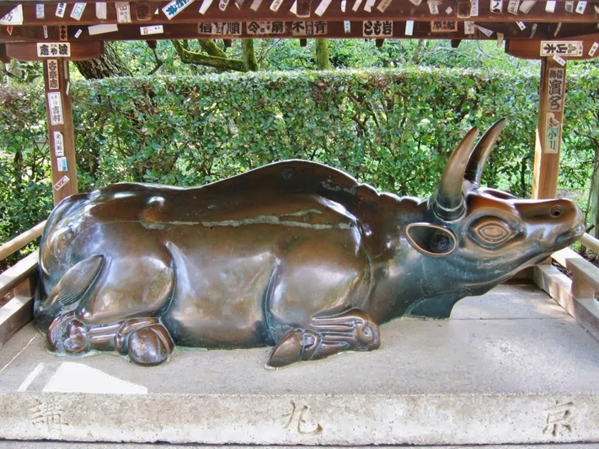 境内には牛の像や筆塚などもあり、多くの受験生が参拝に訪れます。